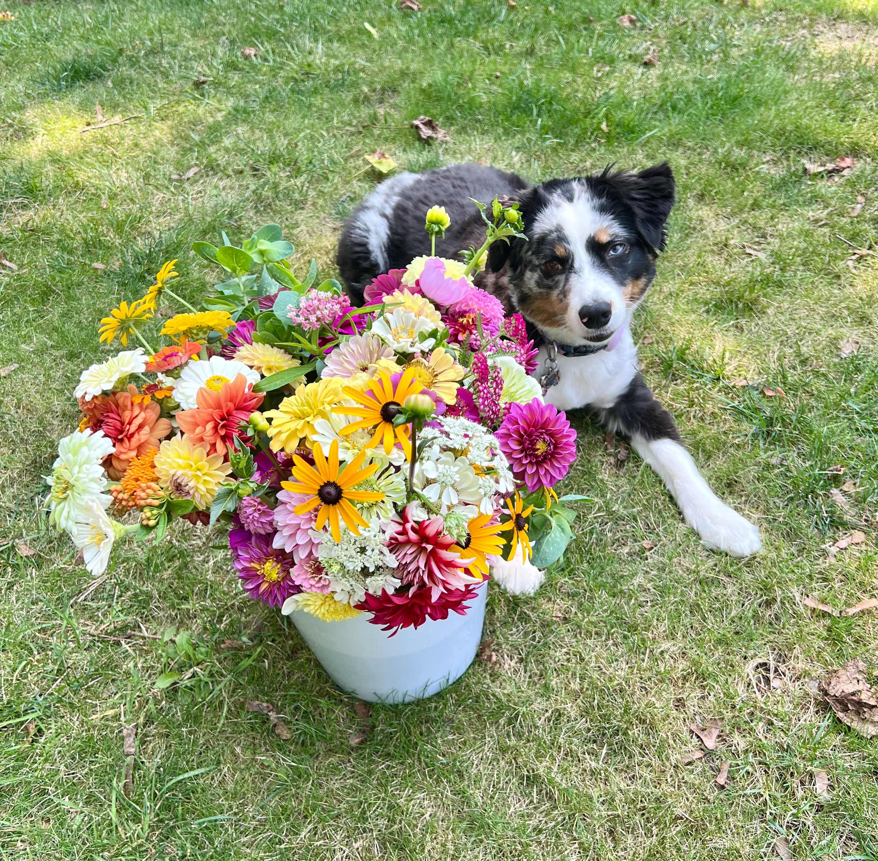 We are a mother and daughter team, joined by our sidekick Paisley, who can often be found in the field with us. While dahlias are our passion, we also grow a variety of complementary filler flowers to enhance our bouquets. We offer custom arrangements, flower bars, and event services throughout the Pittsburgh area.