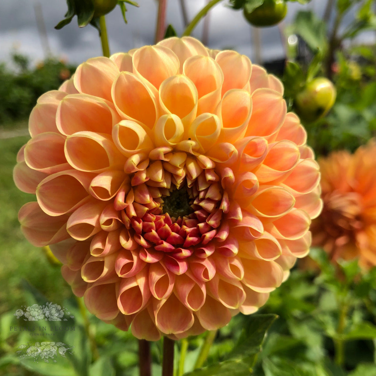 This compact plant only reaching 2.5-3.5' produces large ball-type bloom sometimes up to 4" in diameter. Known for its warm apricot to honey-orange blooms it is a perfect base for any arrangement and has a long vase life. Great to grow in front of some taller varieties in your garden!
