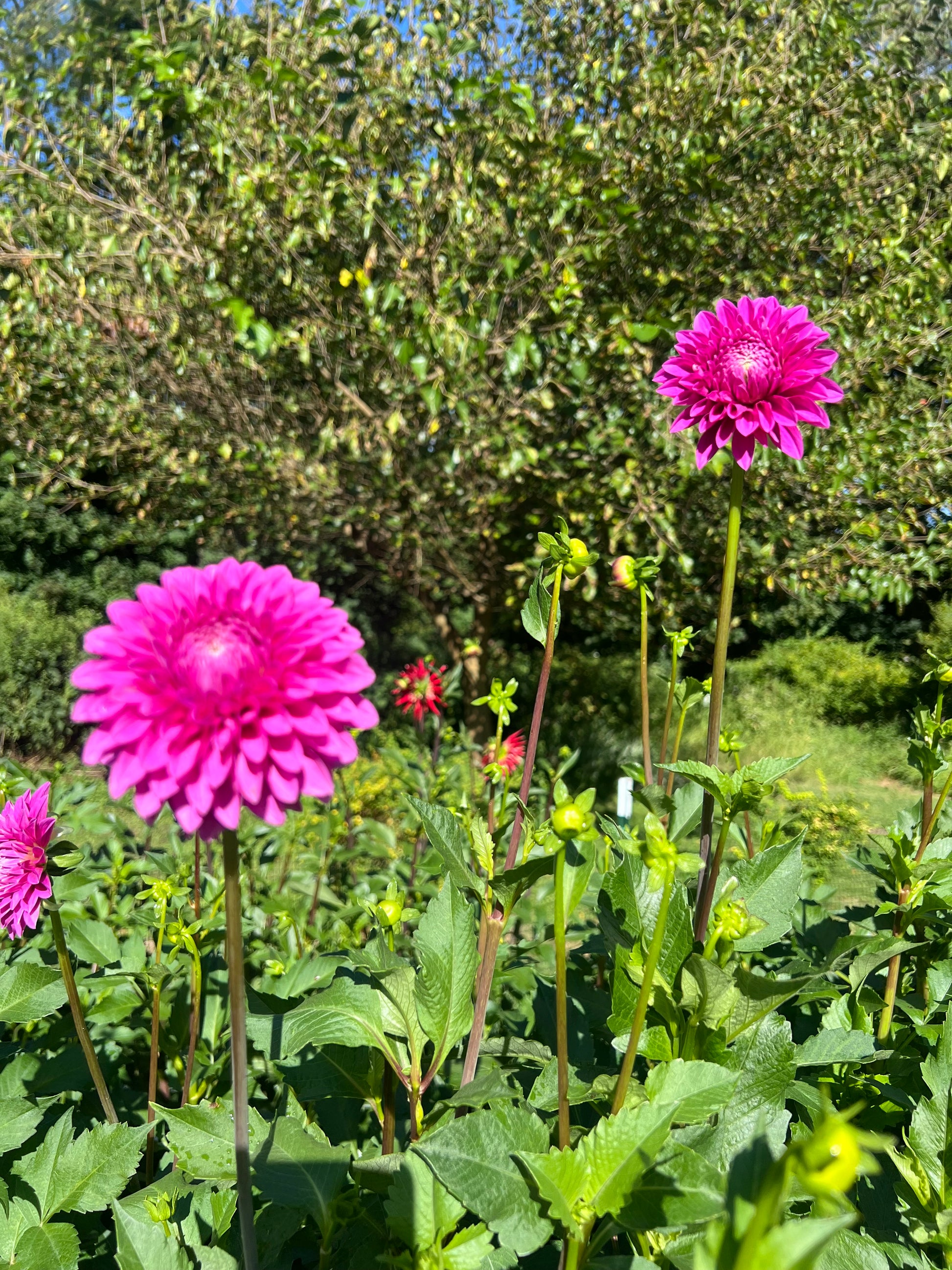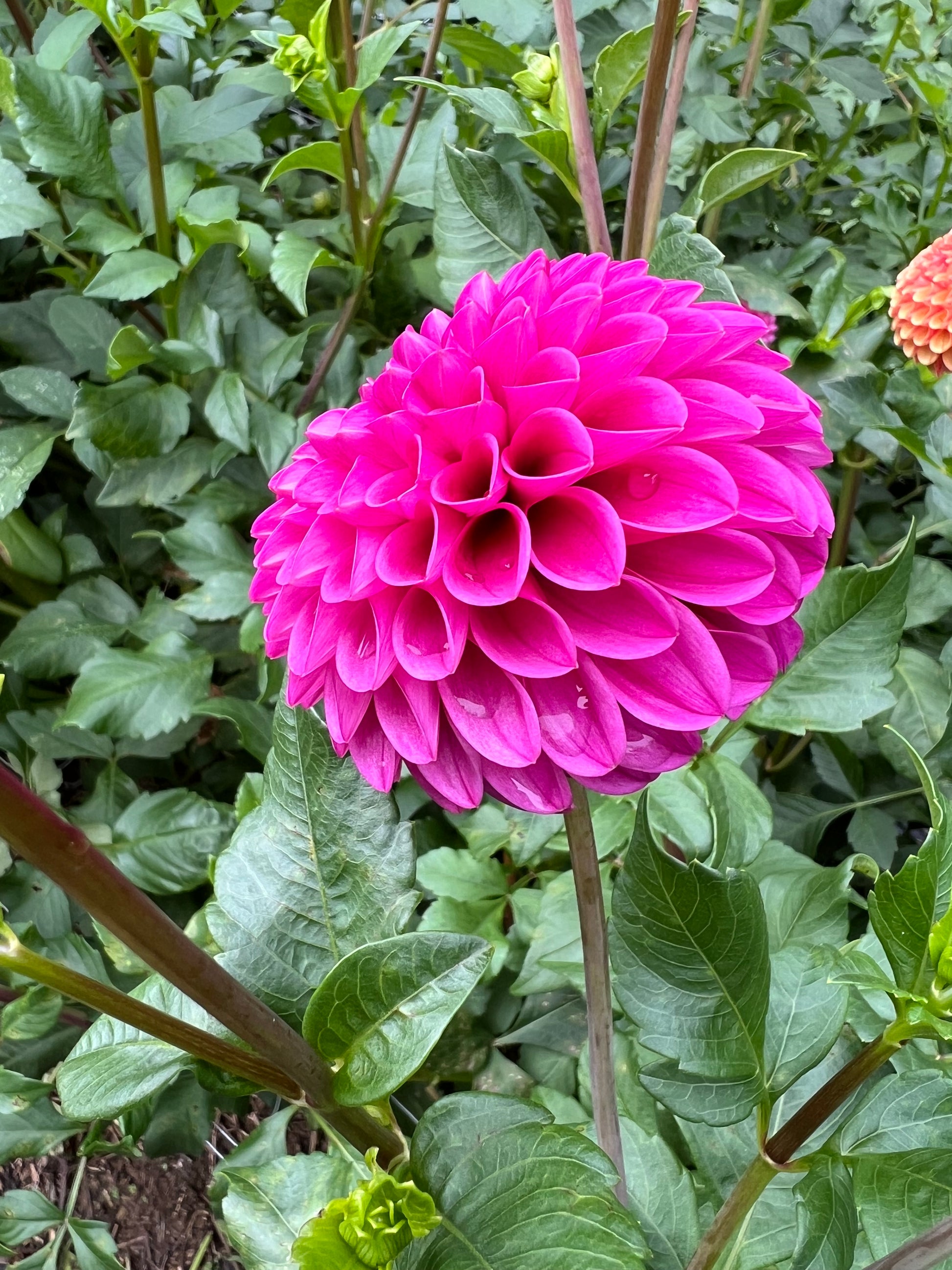 This is one of our favorite solid color dahlias in our fields with a beautiful magenta-purplish hot pink color. The blooms are around 4" in diameter making spikey tail feathers around to the back-side. We figure "Bill M" was a great guy to get such a stunning dahlia named after him. Grows 5' or more in our field with long strong stems and blooms that keep coming all season long.