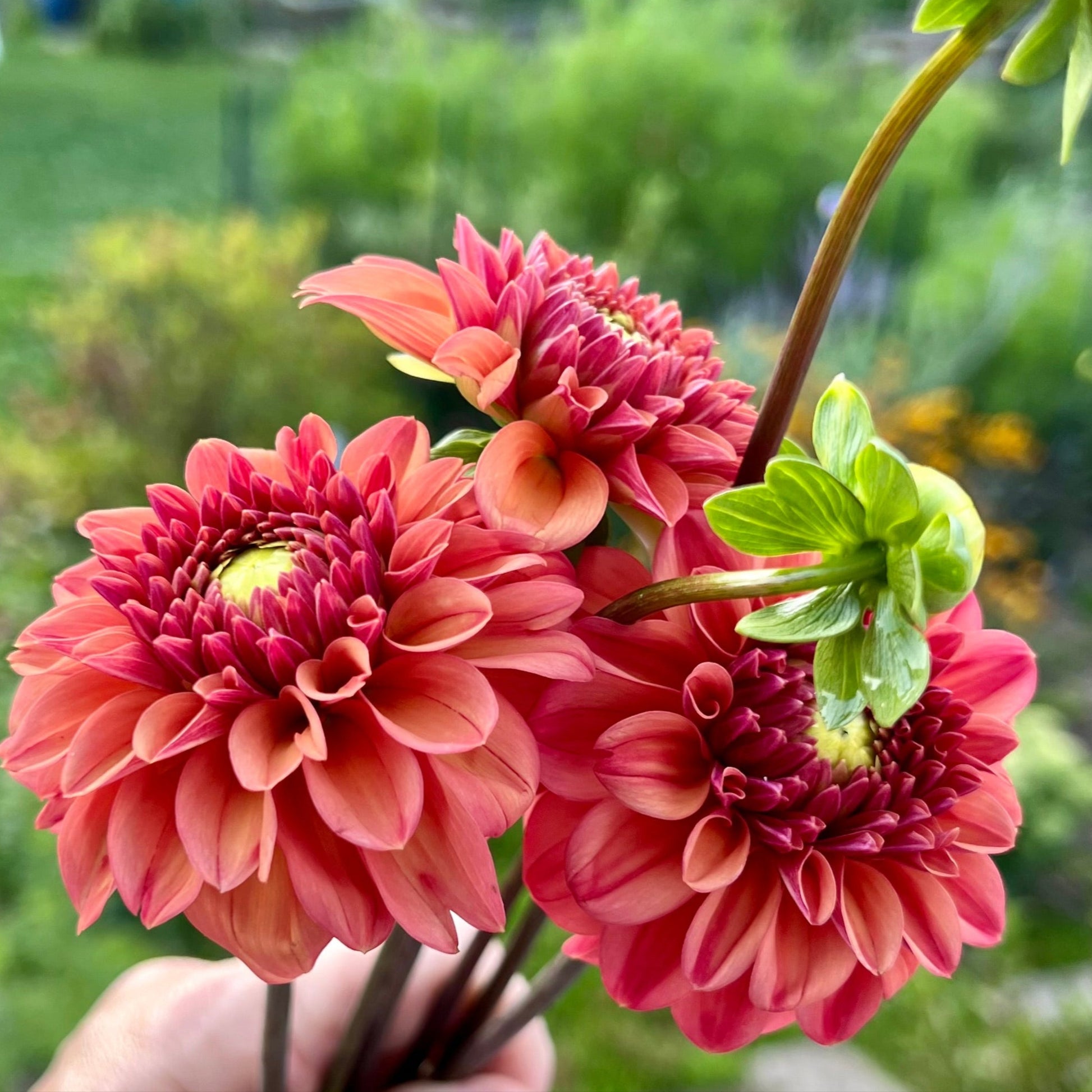 Ice Tea dahlia is a stunning formal decorative variety with burnt orange, copper and caramel tones of brewed ice tea. We find blooms average between 4-5" and the plant grows between 3-4'. We love the little hint of green you see at its center when first opening.